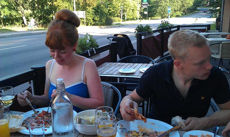 På kvällen tog vi med Markus/Vilma och Maria och käkade kvällsmat på Napolis uteservering. Kanske jag inte behöver tala om, ni hörde oss säkert eller åtminstone ungkalvarna. Det var ett himla stoj på dom haha. Vi var dock själva på uteserveringen så vi störde ingen. Vilken himla skön sommarkväll med många skratt.