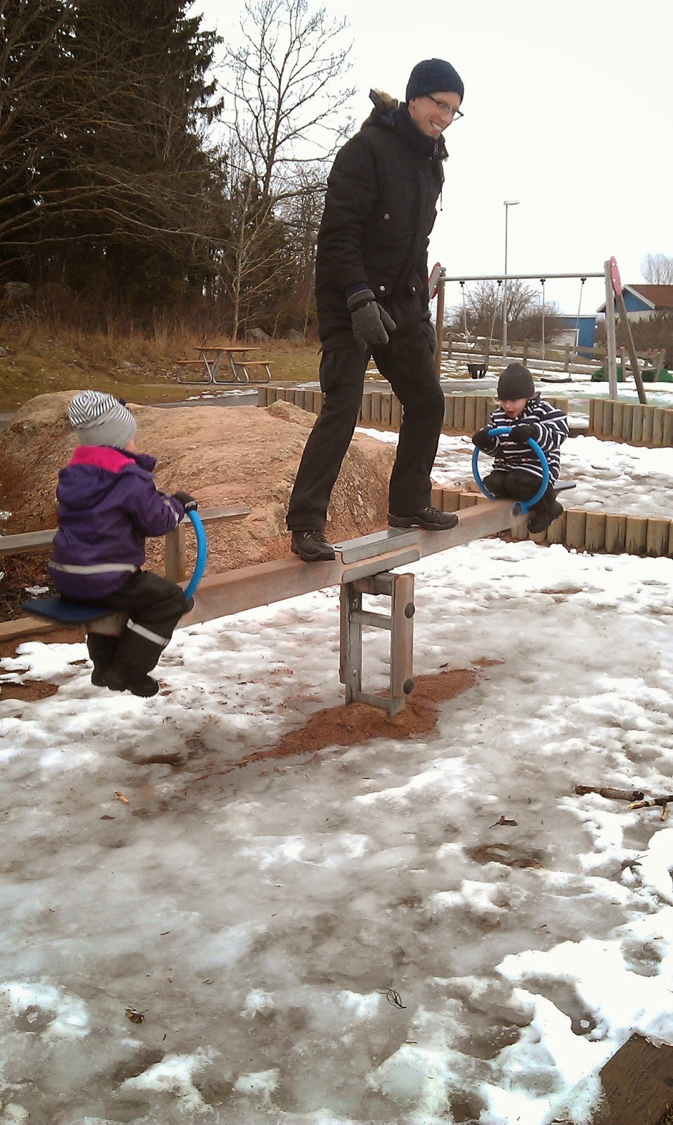 det var så satans grått och kallt och vi vuxna led och kämpade oss igenom det i tysthet, Skorpan och Vilma sket i vilket och hade skitkul.