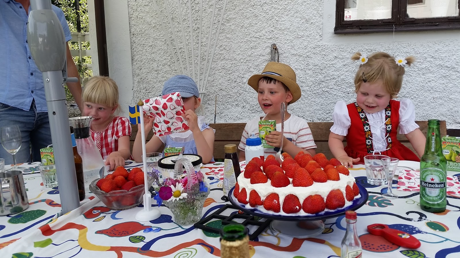 plocka blommor till midsommarstång och "fiska" godis i det ihåliga trädet!